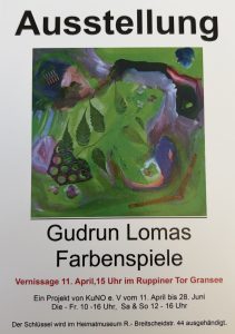 Wir laden Sie herzlich ein zur neuen Ausstellung „Farbenspiel“ der Künstlerin Gudrun Lomas. In ihren neuesten Werken entfaltet sich eine lebendige Dynamik aus Licht, Schatten und intensiven Farbwelten.